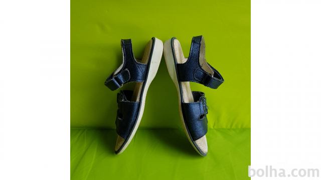 Prodam zelo lepo ohranjene, malo nošene otroške sandale. Barva je temno modra, perl svetleča, na paščku je metulj posut z bleščicami.