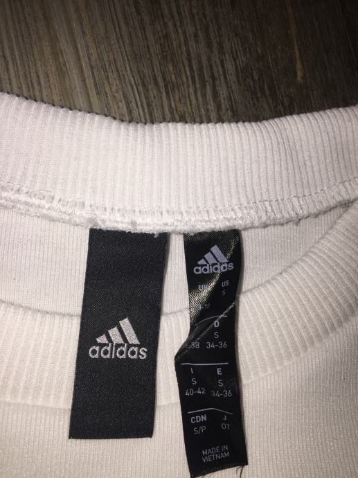 Prodam majico znamke Adidas z dolgimi rokavi v beli barvi. Piše, da je velikost S od 8-10 let, vendar je večja, zato primerna tudi za starejše deklice, tudi najstnice.