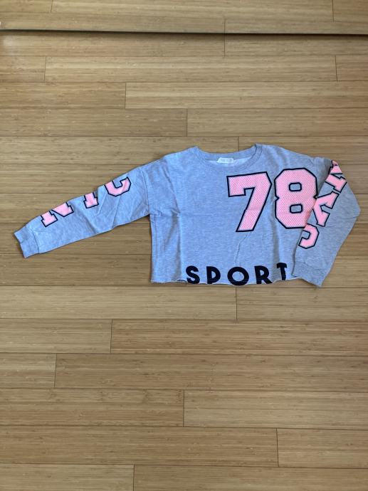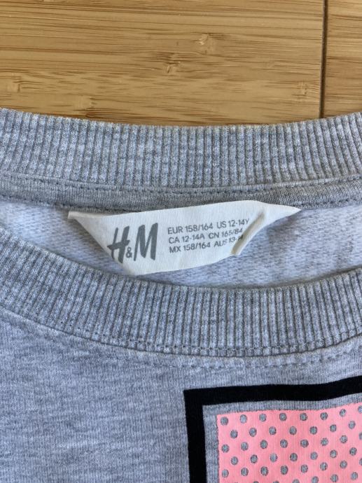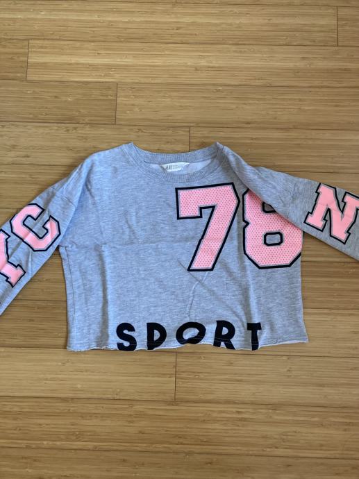 Prodam nošen H&M siv krajši pulover z roza napisom primeren za 12-14 let, 158/164 cm.