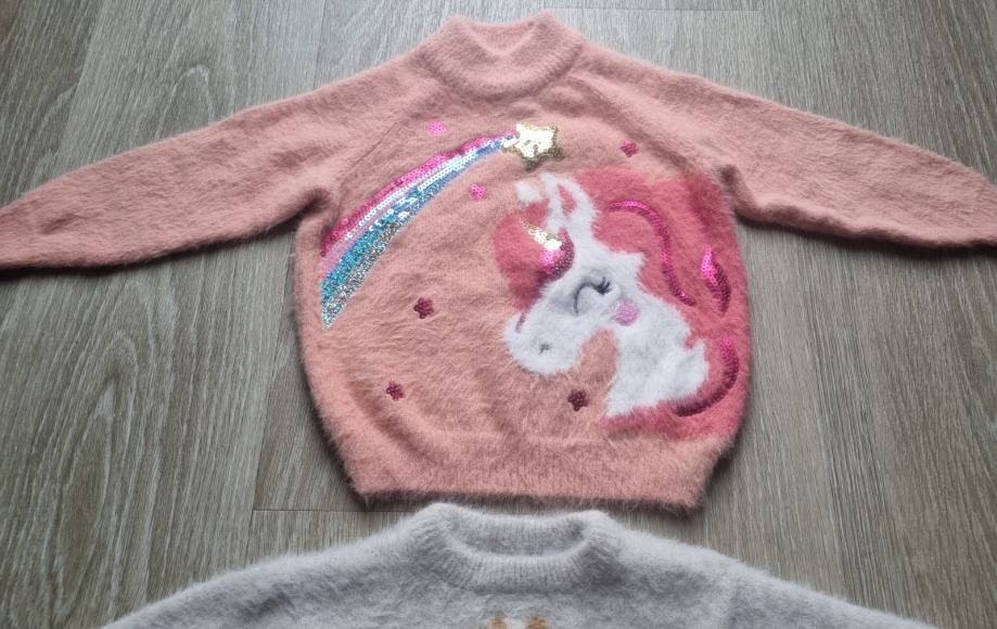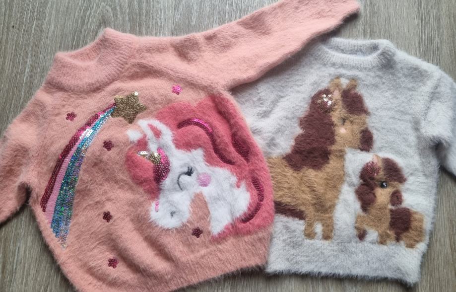 V kompletu prodam dva najbolj luškana, najbolj mehka, puhasta in najbolj topla puloverčka za deklico.