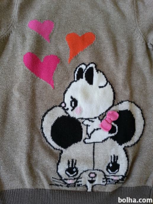 Lepo ohranjena puloverja hm in ca 92, zajček in miška....miška malce daljši, kot tunika...cena zajčka 4€, miška 5€