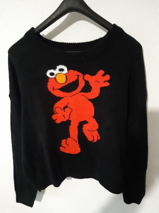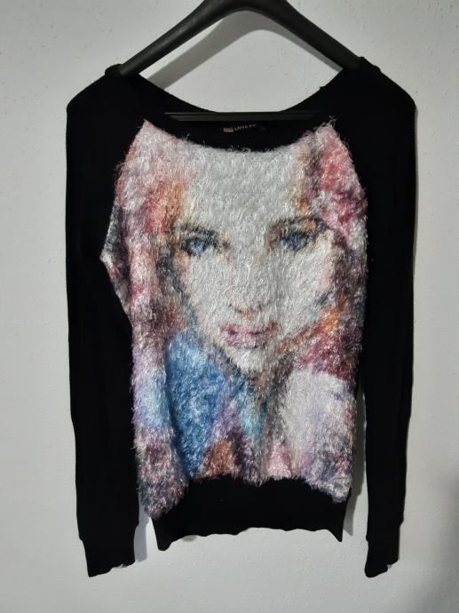 16. Črn pulover z motivom obraza, vel. M, cena 3 eur
