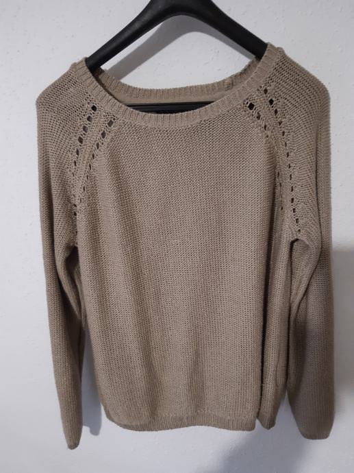 11. Temno bež pulover, pleten, vel. L, cena 2 eur