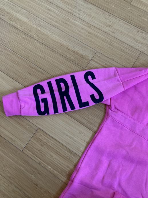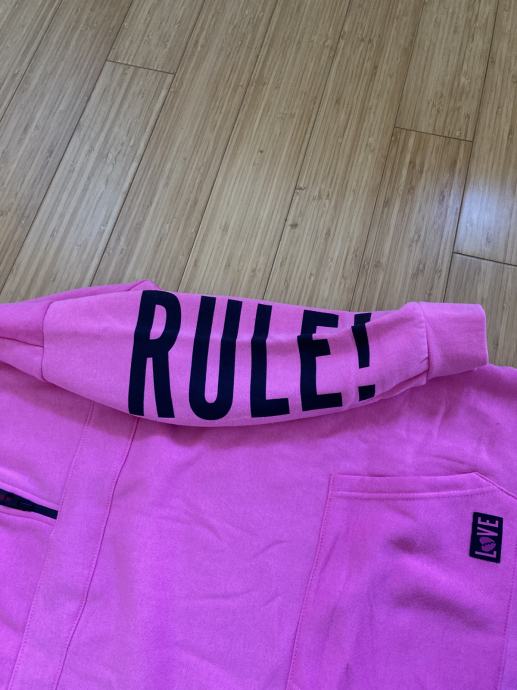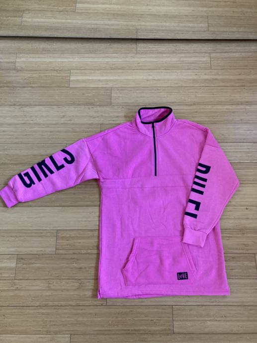Prodam enkrat nošen roza pulover s črno zadrgo in napisom iz trgovine Takko. Primeren je za 12-14 let, 158/164 cm.