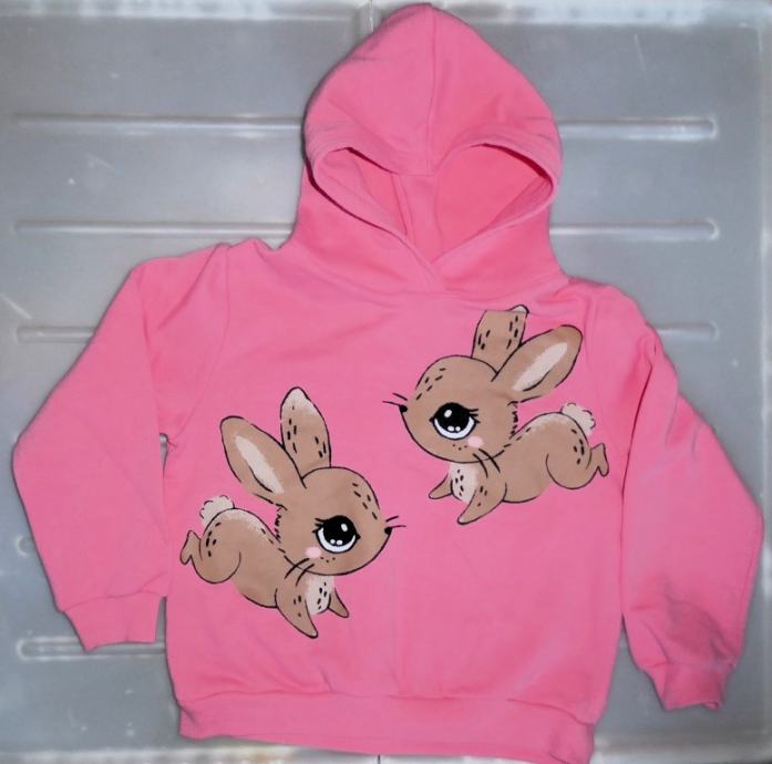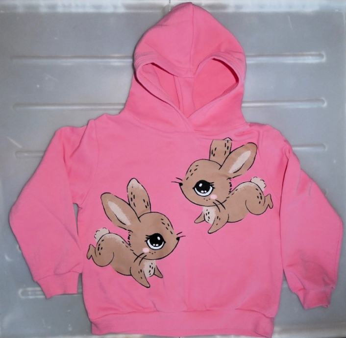 Zelo lep topel roza pulover, prijeten material. Ima čudovito slikico. Kot nov.