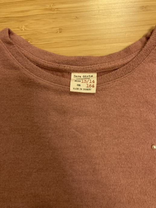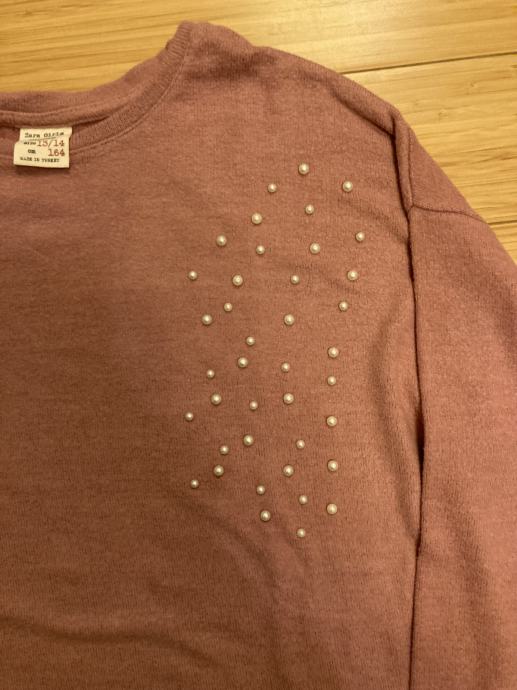 Prodam nošen Zara roza pulover s perlicami z dolgimi rokavi primerno za 13/14 let, 164 cm.