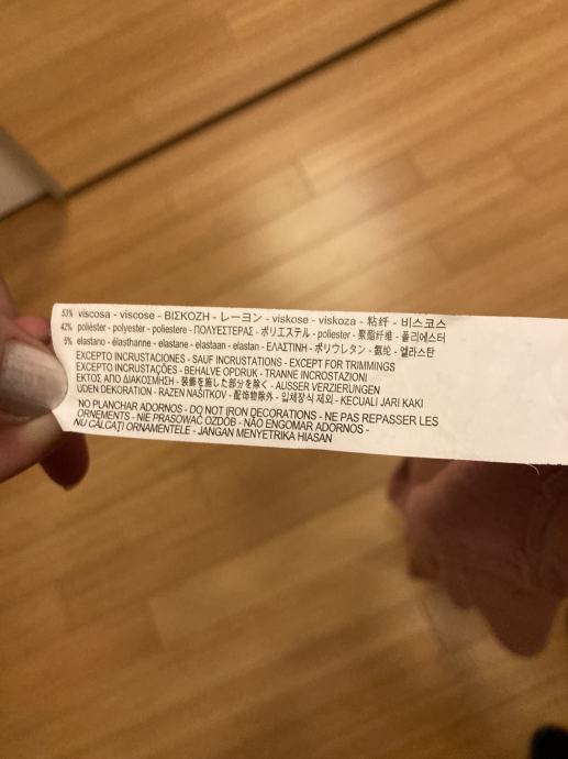 Majica je 53% viskoza, 42% poliester in 5% elastan.