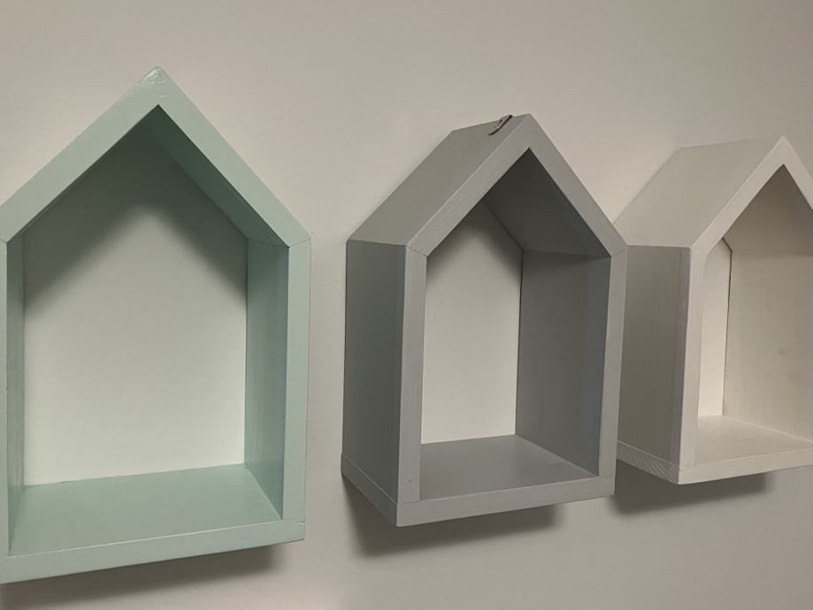 Prodam 3 hiške različnih barv kot dekor polica za otroško sobo.