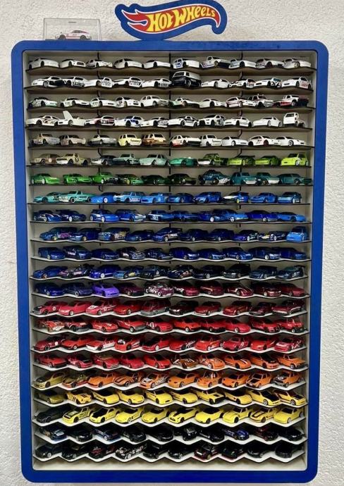 Prodajam povsem novo polico za avtomobilčke Hot Wheels, idealno za otroško sobo. Polica omogoča pregledno razstavljanje in shranjevanje zbirke miniaturnih avtomobilov ter je odlična rešitev za mlade zbiratelje. 110/220 avtomobilčkov