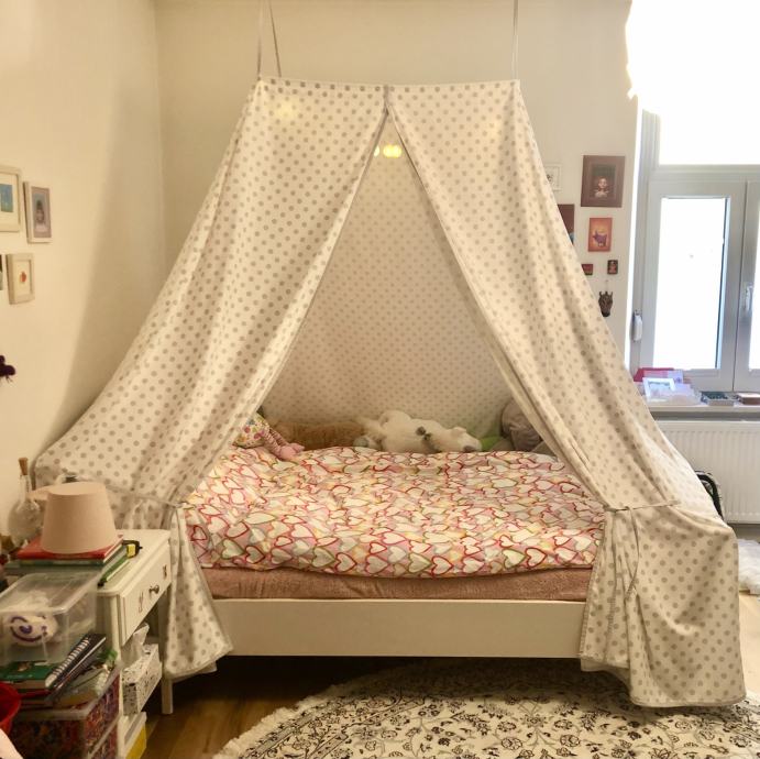 Šotor za posteljo. Dimenzije so 2m x 2m.