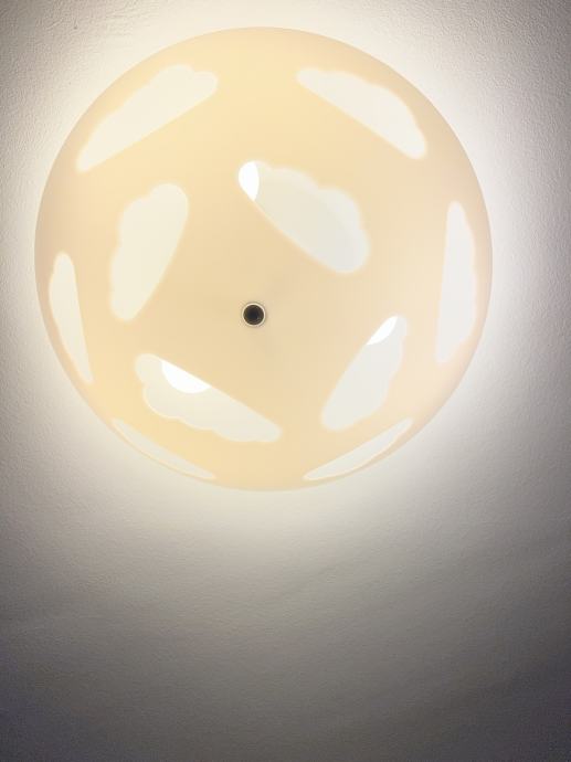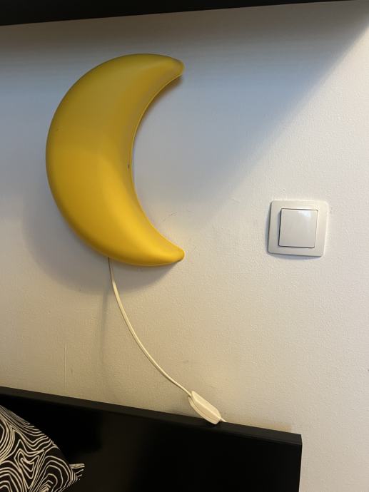 Stropna luč ima motive oblačkov. Stenska luč je v obliki Lune.