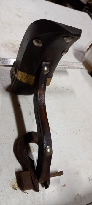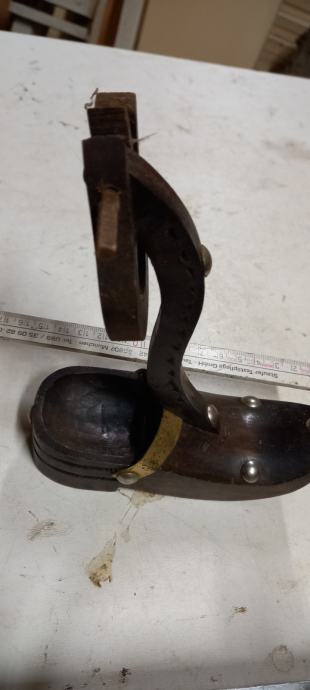 Čevelj iz lesa, lahko je znak ob napisu za čevljarstvo ali trgovino z čevlji.