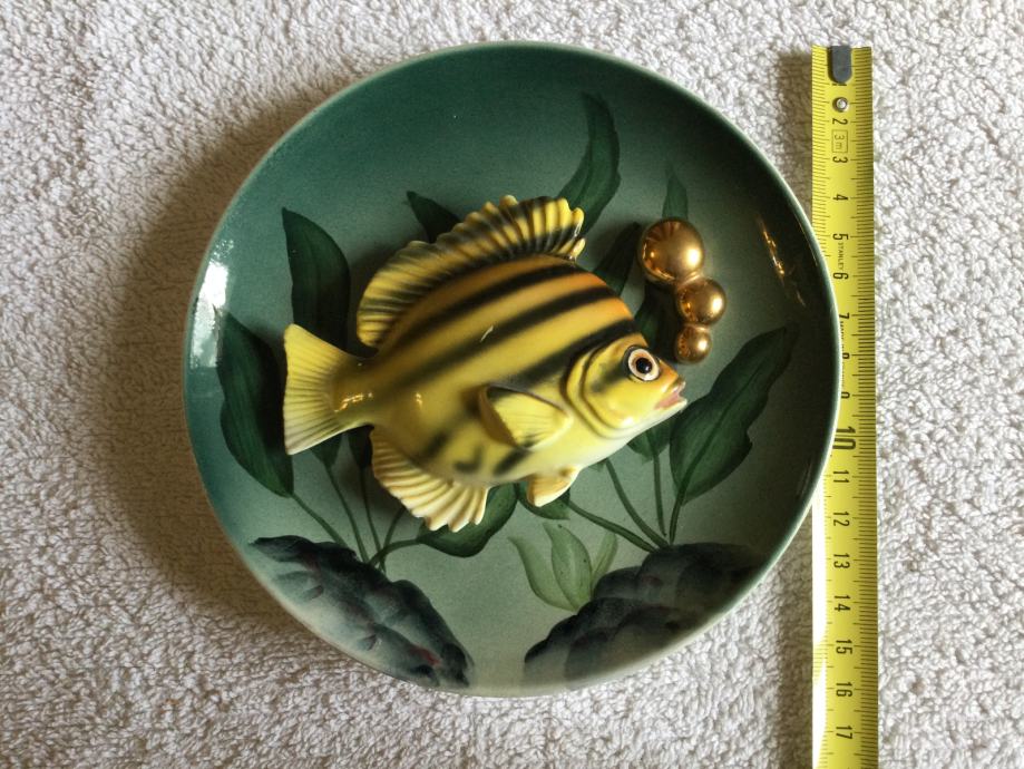 Krožnik z reliefno ribo za obesiti na steno.