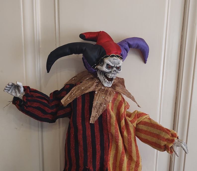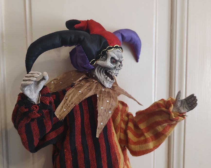"EVIL JESTER" - NORČEK HUDIČ, LUTKA ZA NOČ ČAROVNIC, ZA DEKORACIJO ALI ZBIRATELJSTVO.