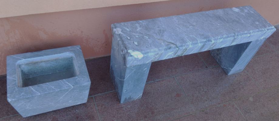 Kamnita vrtna klop, dimenzije 103/27/46 cm.