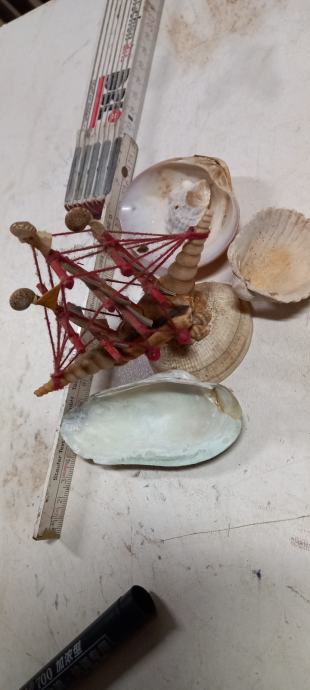 Ladja-jadrnica iz školjk in 3 školjke, lep okras.