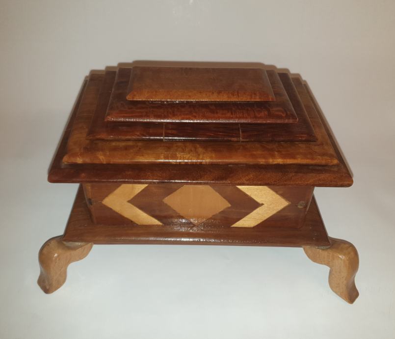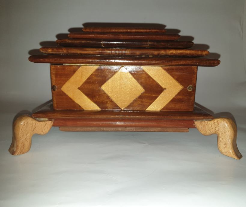 V ponudbi čudovita lesena škatla za nakit.narjena iz masivnega afriškega lesa v kombinaciji s hrastovim.