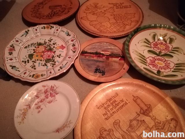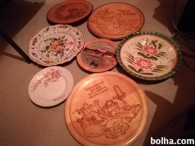 Prodaja se lot krožnikov, stenski krožnik, stari stenski okrasni krožniki, vseh 6 za 15€,Trije so leseni,,, - 15€
