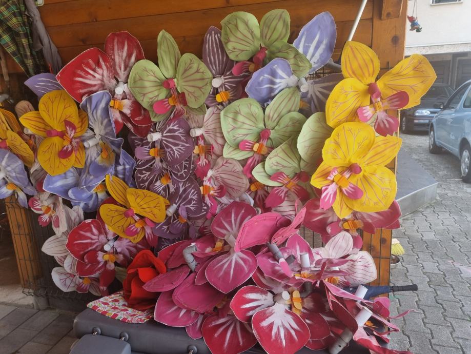Jaz: Pokličeš, pošlješ mail, goloba prismonošo, fax (številke ne vem), SMS, FB chat, Viber, Messenger, telegram, brzojavko ali pa se kar oglasiš in poveš kakšne so želje. Izbira res velika: Vrtnica rdeče barve, več barv orhideje, kot jih človeško oko prepozna. No ja, skoraj. Na voljo v vijolični, roza, bordo rdeči, beli, marelični, zeleni, lila, rumeni barvi, kmalu pa tudi modra. Imam pa še sončnice in marjetice. Za tašče pa tudi velik kaktus( 3,5 metra).
