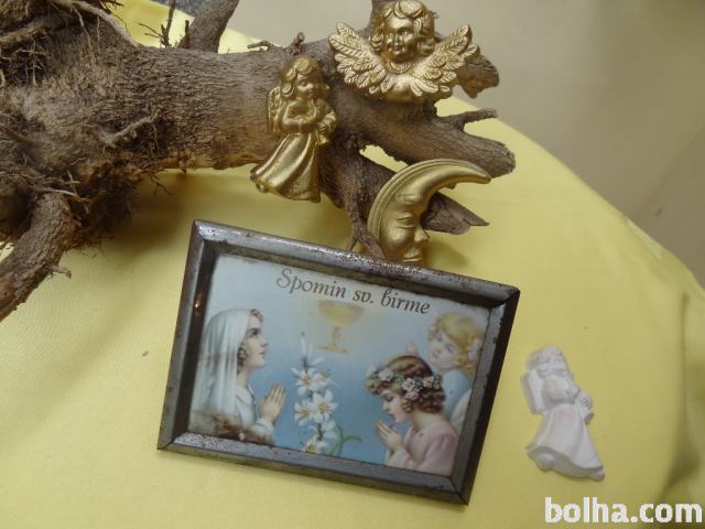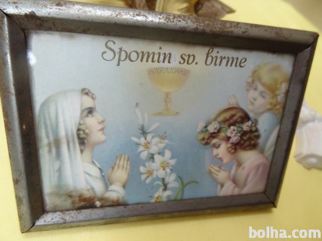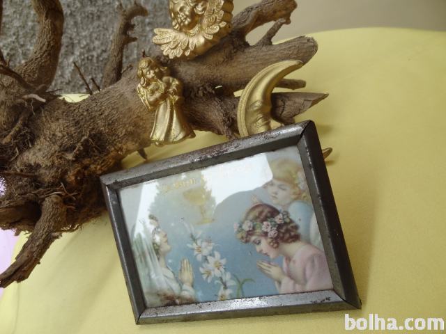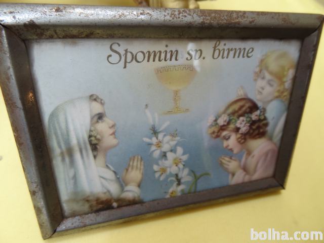 NABOŽNA SLIKA V KOVINSKEM OKVIRJU 14,5 x 10,5 cm SV. BIRME. PISALO SE JE LETO 1940.