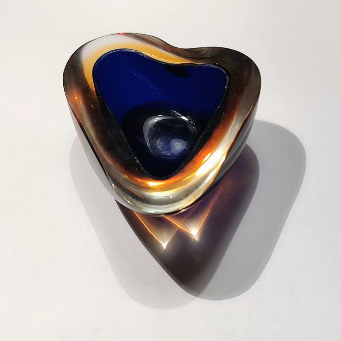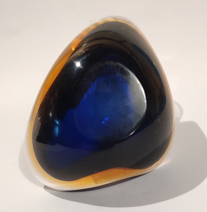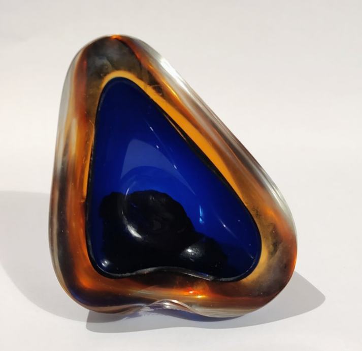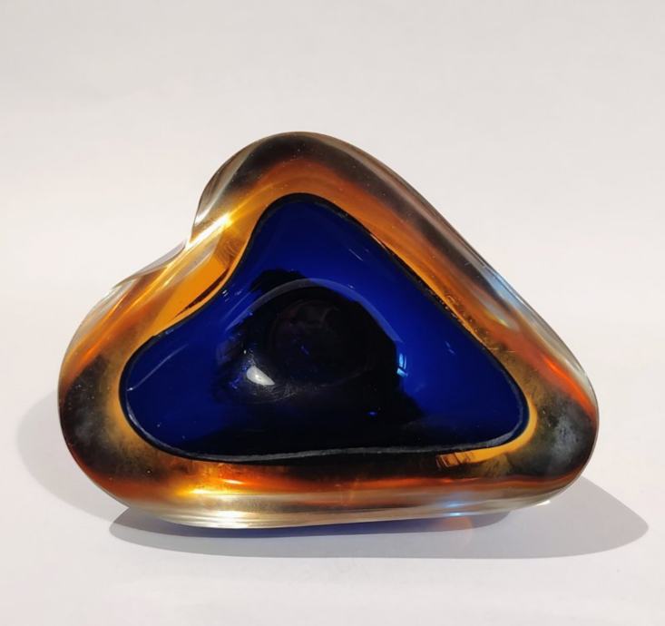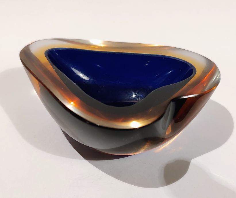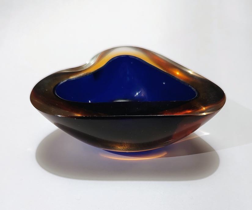 POSODICA ZA DROBNARIJE ALI PEPELNIK IZ ROČNO PIHANEGA MURANSKEGA STEKLA IZ SREDINE DVAJSETEGA STOLETJA, MODRO & JANTAR SOMMERSO.