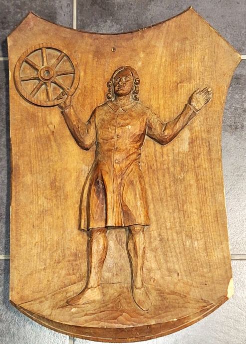 Prodam starejši lesen grb občine Radovljica (levi vogal ščita malo manjka), velikosti cca 35 x 50 cm, kot je viden na fotografijah.