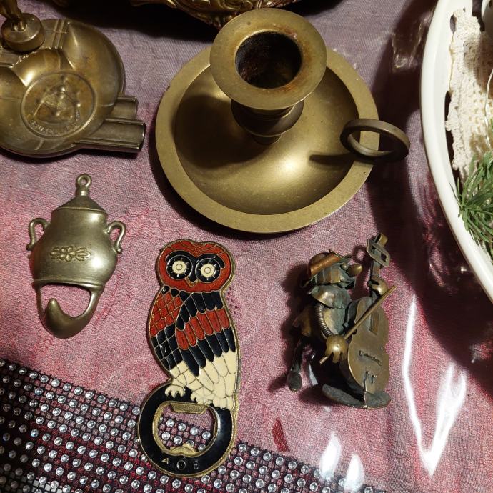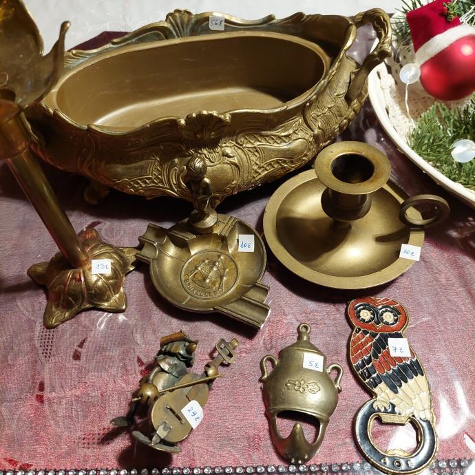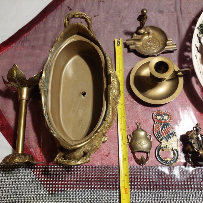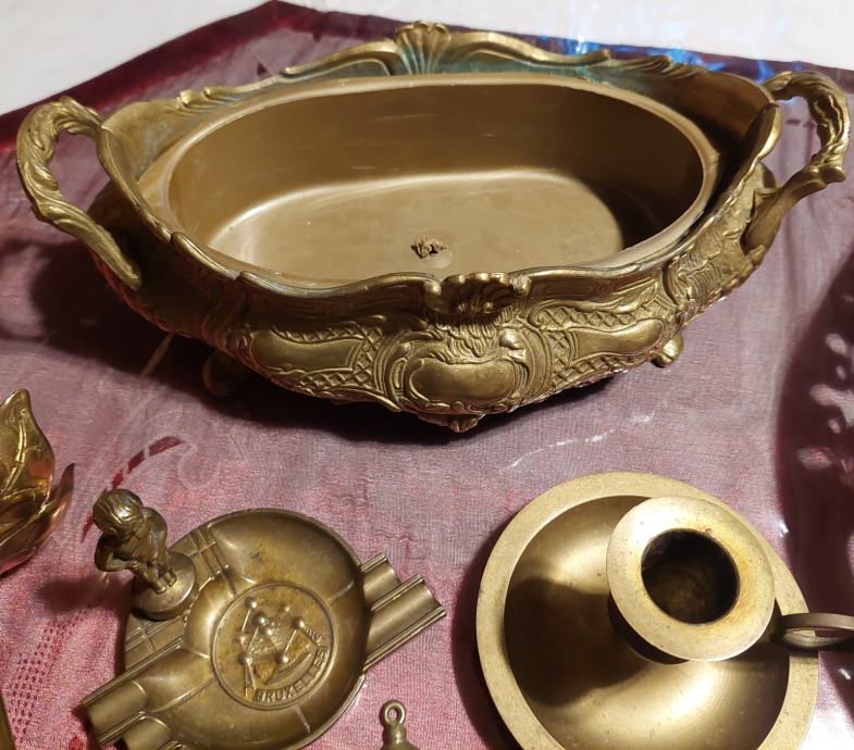 Skleda stara MESING-MEDENINA ,svečniki ,pepelnik....