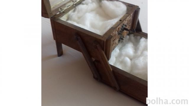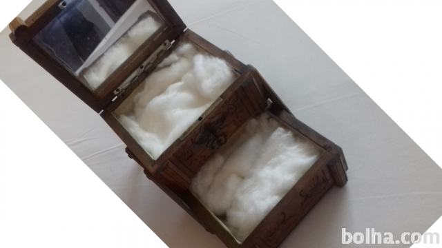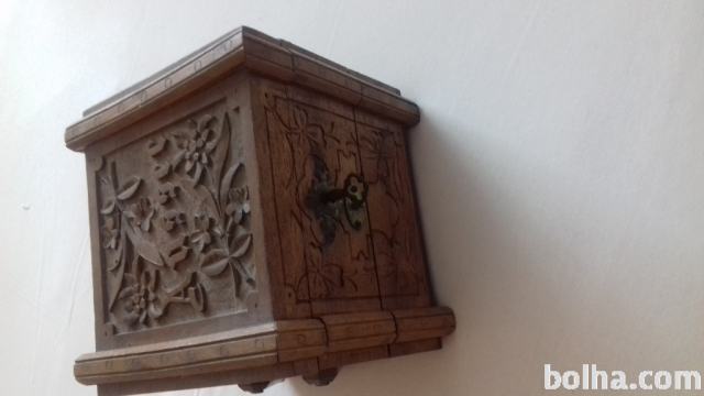 Skrinjica za nakit, lesena, ročno delo, s ključkom za zaklepanje (delujoč), velikost 13 x 13 cm, stara 120 - 150 let, cena 70€.