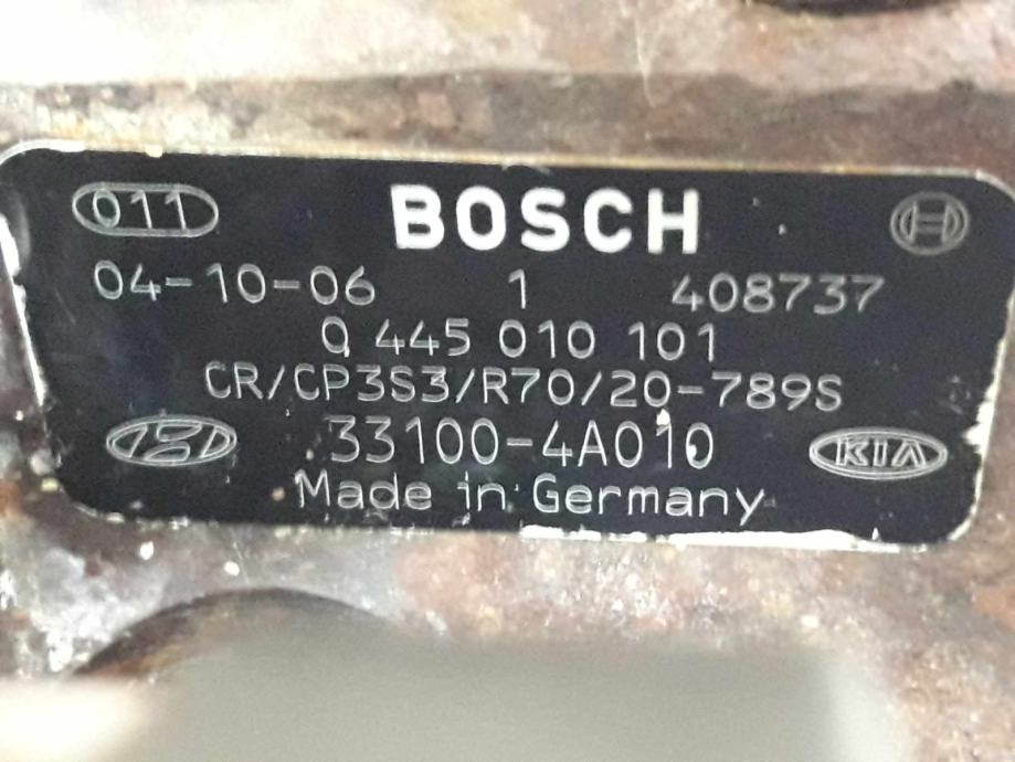 Prodam visokotlačno črpalko za Hyundai Kia 1.5 CRDi (102 KM) in 2.5 CRDi (110 in 140 KM). Črpalka je v zelo dobrem stanju, deluje brezhibno (avto je imel 160.000 km) in je original Bosch.