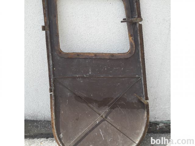 vrata iz aluminija od legendarnega medvojnega vojaškega dvomotornega letala Cessna T-50 Bamboo Bomber oz. Bobcat, ki so ga uporabljali za učenje pilotov ameriške vojske Avione so izdelovali od 1939 do 1950. Ime Bamboo je letalo dobilo zaradi lesene konstrukcije. Po vojni se je uporabljalo kot lahko transportno letalo. Kako je del tega letala prišel v Slovenijo zaenkrat ni znano. Primerne kot lep element za dekoracijo interierja. Ogled po dogovoru.