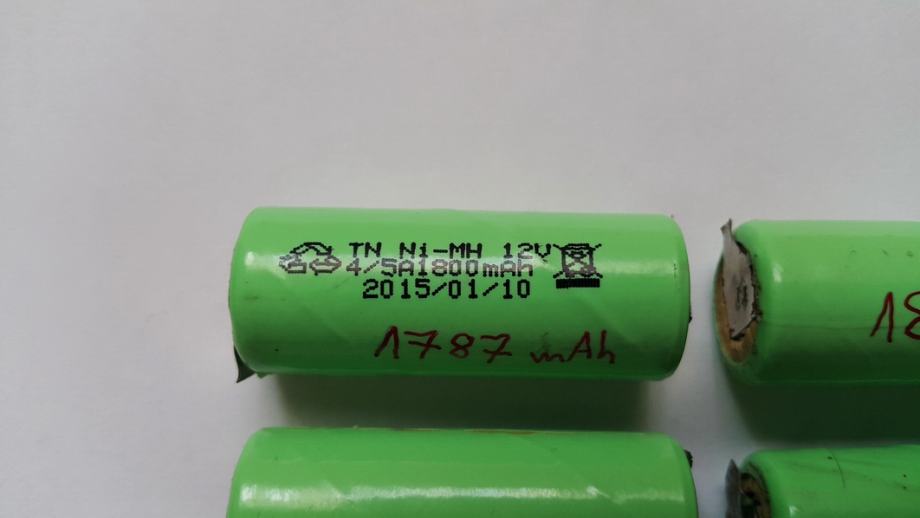 Baterije imajo relativno še kar ohranjene svoje prvotne kapacitete – 5x 1800 mAh (100 %), 1787 mAh (99 %), 1575 mAh (87,5 %), 1560 mAh (86,7 %), 1480 mAh (82 %), 1450 mAh (80 %) in 960 mAh (53,3 %). Da preprečim njihove nadaljne degradacije njihovih kapacitet, jih ohranjam primerno izpraznjene (cca. na 30 % napolnjenosti-izpraznjenosti). Za kapaciteto so bile improvizirane testirane na polnilcu LiitoKala Engineer Lii-500.