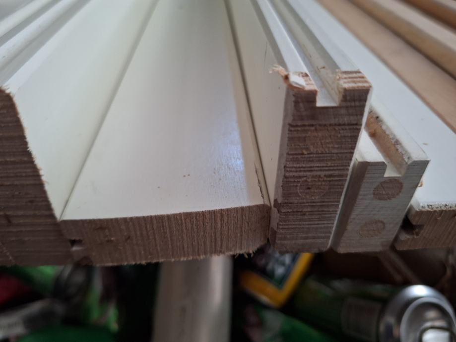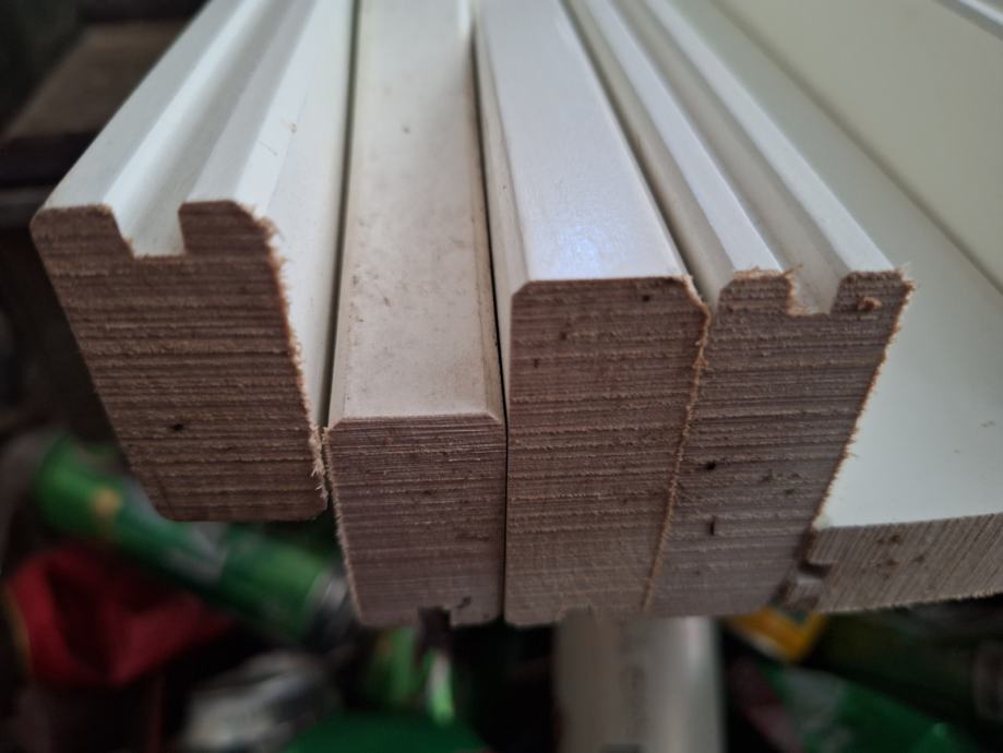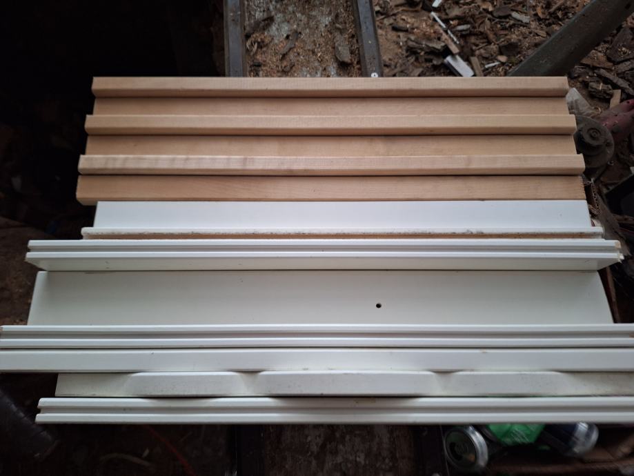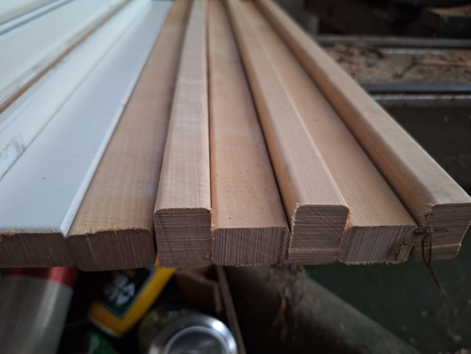 Les bukev, naravna in belo lakirane letvice, cena 1 do 1,5 eur za kos, vseh 14 kosov je cena 14 eur.