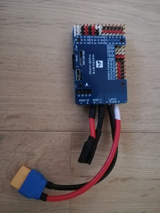 Prodam rabljen Mateksys F405-WING flight controller s prilotanimi connectorji (XT60 female, 2x banana plug female).