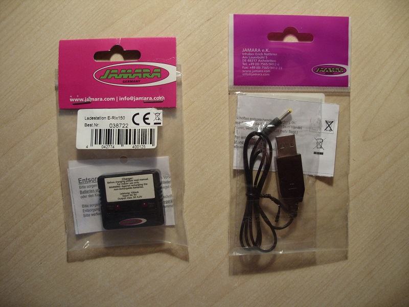 Naprodaj sta popolnoma nerabljena (še zapakirana) polnilec ter pripadajoči USB kabel za polnilec. Oboje je firme Jamara. Polnilec je namenjen polnjenju 1S LiPO akkumulatorjev. Polni lahko dva akumulatorja naenkrat. Polnilni tok je 150 mA.