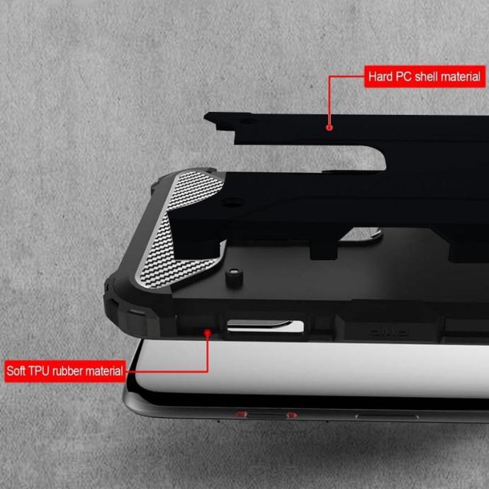 Ovitek ARMOR je nova generacija zaščite za vaš telefon. Namenjena je ljudem z aktivnim življenjskim slogom. Zagotavlja maksimalno zaščito vašega telefona v vsaki situaciji. Etui je izdelan iz trpežnih materialov: trde plastike in upogljivega TPU, zaradi česar je izjemno odporen na udarce. Hibridna torbica je opremljena s praktičnim stojalom za udobno uporabo telefona.