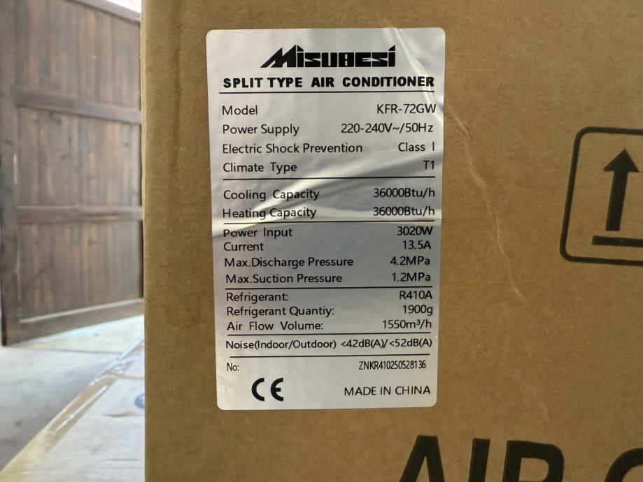 Na voljo imam 5 kosov split klim (model KFR-72GW, 36.000 BTU / 10,5 kW. Zunanja in notranja enota).