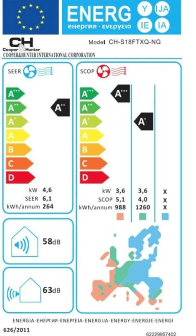 Koeficient SEER: 6.40