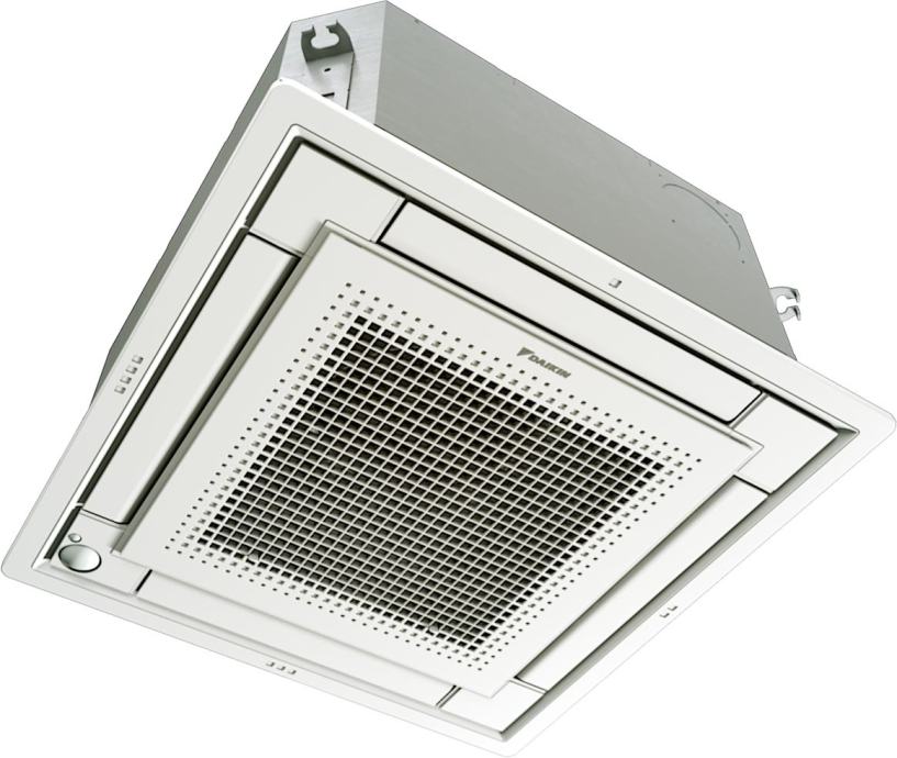 Daikin stropna enota predstavlja izjemno zlitje klasičnega oblikovanja in tehnološke odličnosti v elegantni beli barvi ali pa v kombinaciji bele in srebrne. Njena prednost je predvsem njena funkcionalna velikost, ki se prilega v standardno stropno ploščo v velikosti 60×60 cm. Primerna je predvsem za poslovne prostore.