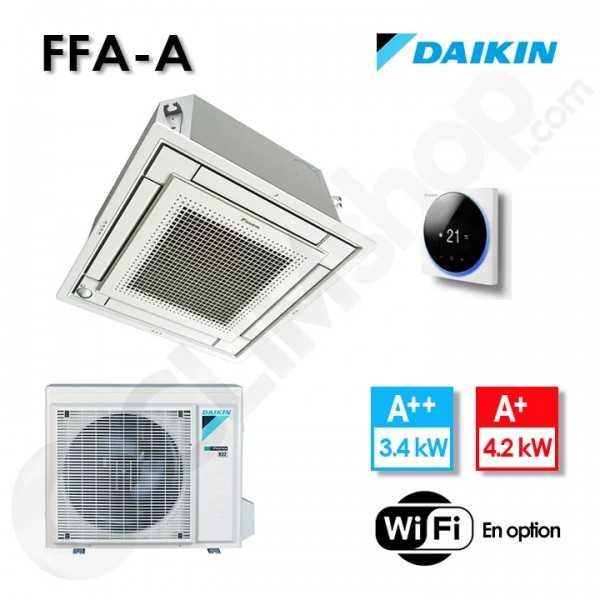 Daikin FFA35A9 je notranja enota za klimatske naprave, ki se uporablja v več-split sistemih. Ta enota je zasnovana za vgradnjo v standardne stropne plošče velikosti 600 x 600 mm. Njena kapaciteta hlajenja je 3,5 kW (12.000 BTU), kar je primerno za manjše trgovine, pisarne ali stanovanjske prostore. Enota je zasnovana za uporabo z R-32 hladilnim sredstvom, ki je okolju prijaznejše in učinkovitejše od starejših hladilnih sredstev. Poleg tega ponuja funkcije, kot so individualna kontrola lopatic, prisotnostni senzorji za večjo energetsko učinkovitost in možnost daljinskega upravljanja preko aplikacije Onecta