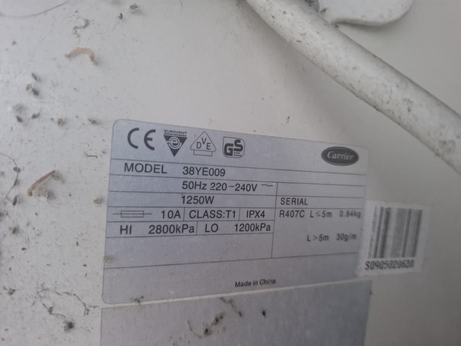 Zaradi menjave, prodam zunanjo i notranjo enoto Carrier Allegro za simbolicno ceno. Klima bo na voljo do srede naprej....