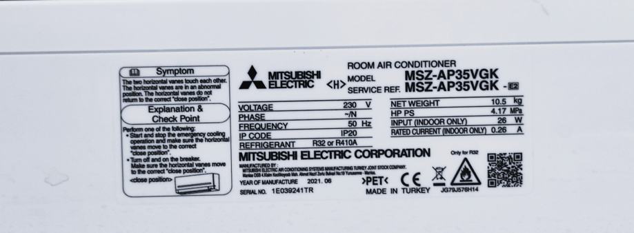 Malo rabljena klima Mitsubishi MSZ AP35VGK. Inštalirana dve leti nazaj, minimalno rabljena dve poletni sezoni. Izjemno ohranjena. Prodaja se zaradi selitve.