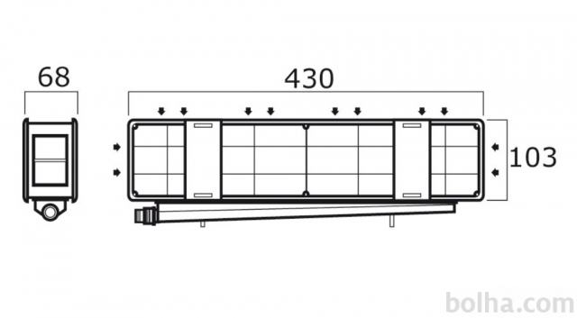Širina: 430mm, globina: 68mm, višina : 103 - 125mm