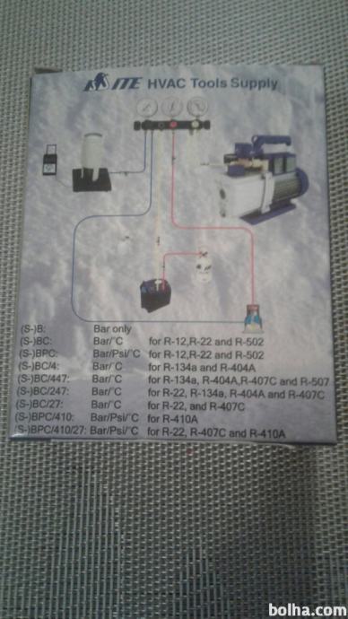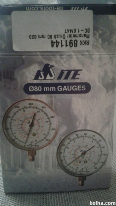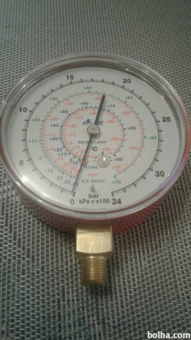 Prodam MANOMETER za preverjanje tlaka v Klimatskih napravah ( model ITE-tools 80mm 823-BC-1-0/447.) Območje meritev je od 0 do 34 barov.Primeren je za meritve tlaka inštalacij katere so napolnjene z PLINI ( R 404A -30 do +66 celzijev, R 134a -10 do +90 celzijev,R 507 -40 do +66 celzijev, BP.R 407C -40 do +70 celzijev.Priklop navpičen 1/4 cole,v kompletu je poleg dodatna cevka in prehodni kos 1/4 cole.Dosegljiv na tel;031-531-013. Vladimir.Na voljo 6 kosov.