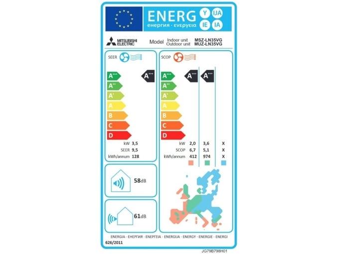 Mitsubishi AP pri hlajenju porablja malo energije in se pri uvršča v razred energijske učinkovitosti A+++, pri ogrevanju pa dosega razred energijske učinkovitosti A+++.