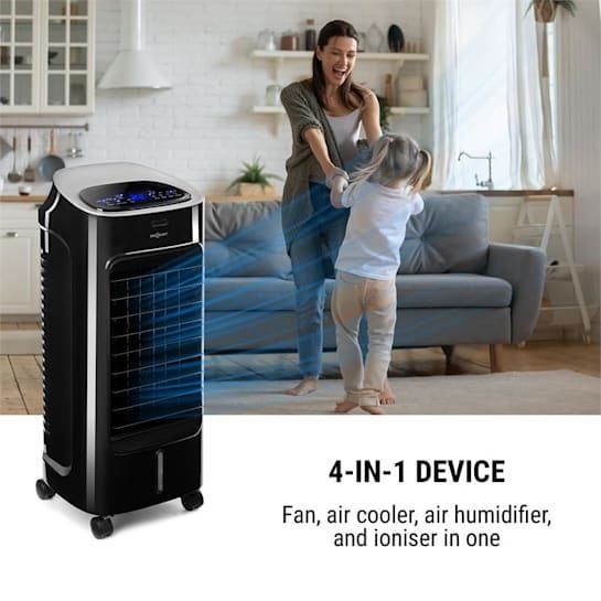 Klimatska naprava 4v1: hladilnik zraka, ventilator, ionizator in razvlažilnik zraka v eni sami napravi, ki se lahko pohvali še s poljubno oscilacijo in udobnim daljinskim upravljanjem … vse za poletno osvežitev.