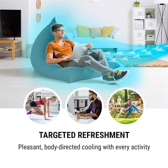 Zmogljiv ventilator oneConcept Coolster spravi v gibanje zrak v treh stopnjah do 320 m³ zraka na uro. Nastavljive lamele zraka, ki piha iz njih, in preklopna oscilacija zagotavljajo boljšo razporeditev zraka v prostoru ‒ idealno za mešanje stoječega zraka. Poleg normalnega načina delovanja so na voljo že individualne možnosti osvežitve: naravni način simulira okrepljen ali šibek naraven veter, medtem ko način spanja ponoči postopoma znižuje delovanje ventilatorja.