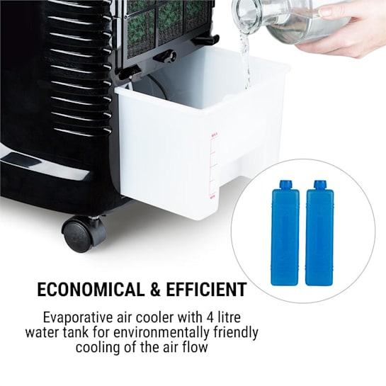 * Varčen in učinkovit: izparilni hladilnik s 4-litrsko posodo za vodo za ekološko hlajenje zraka