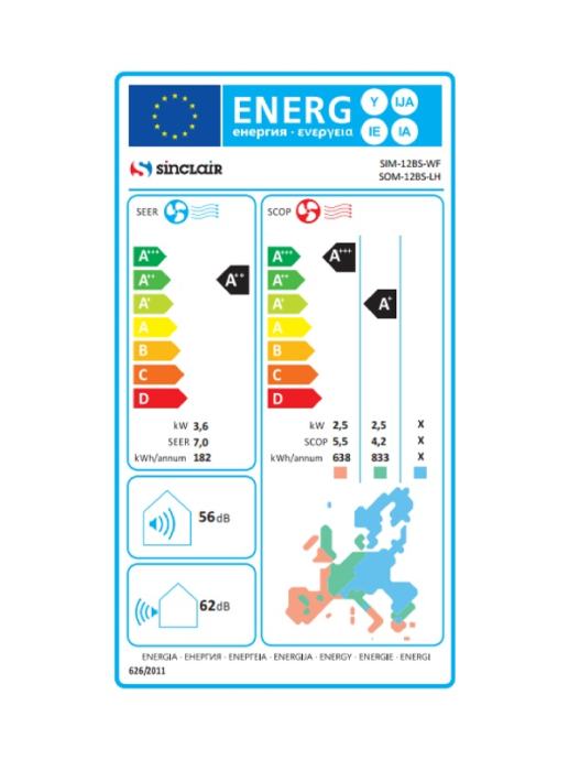 Sinclair klimatska naprava SIM-SOM 12BS3 3,2 kW hlajenje, 3,6 kW gr.