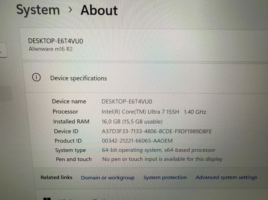 Dell Alienware M16 R2 je v tehnično in vizualno dobrem stanju.
