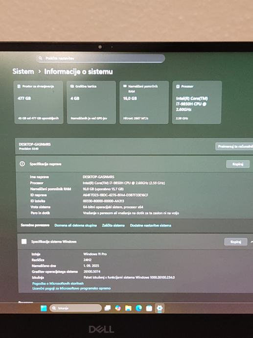 CPU: Intel Core i7 9850H (6-jederni 12-nitni procesor do 4.6GHz).